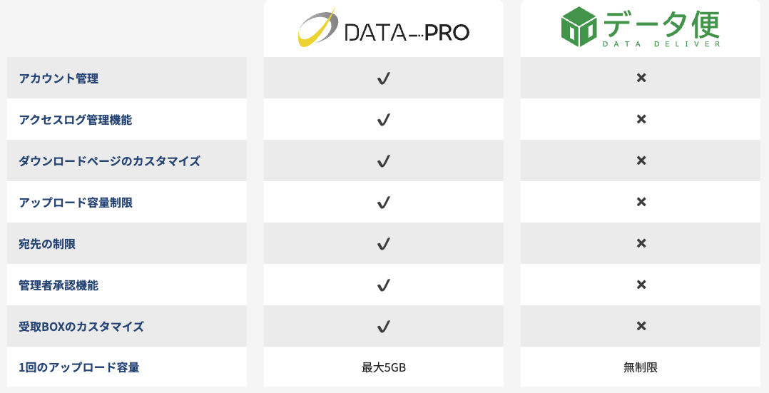 このような状況を受け、「データPro」は、月間500万人が利用するファイル転送サービス「データ便」で培ったノウハウを活かし、